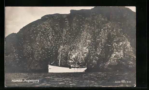AK Fuglebjerg, Felsenpartie mit Dampfer