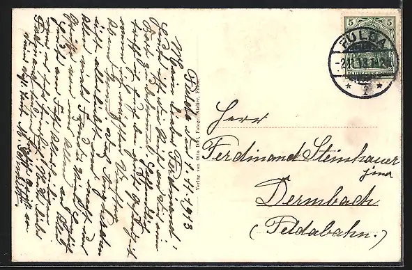 alte Ansichtskarte, gelaufen 1913, Stempelspur, guter Zustand
