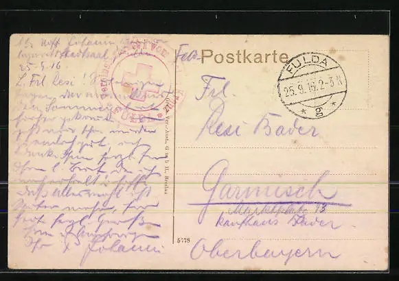 alte Ansichtskarte, gelaufen 1916, Bugspur oben mittig, guter Zustand