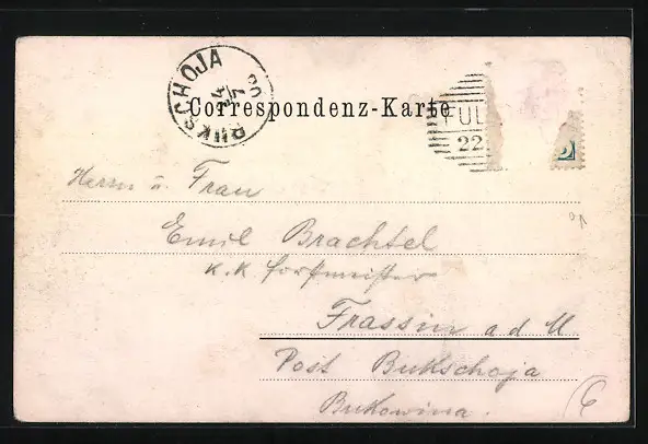 alte Ansichtskarte, gelaufen, Briefmarke entfernt, guter Zustand