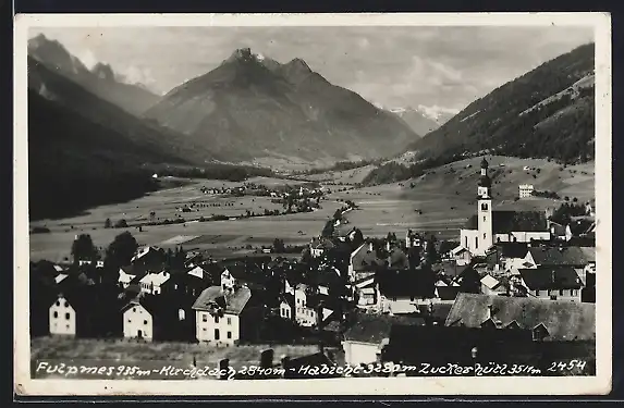 AK Fulpmes, Ortsansicht mit Kirchdach und Zuckerhütl