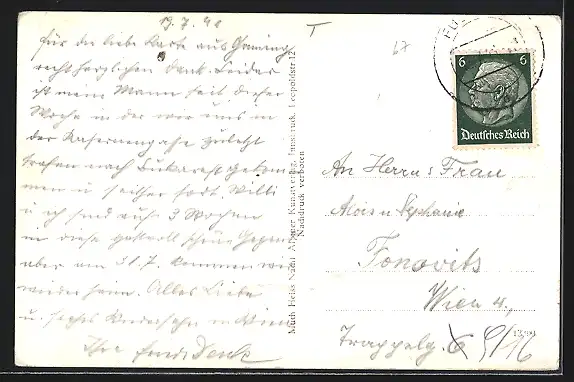 alte Ansichtskarte, gelaufen 1941, Eckknick re. oben, guter Zustand