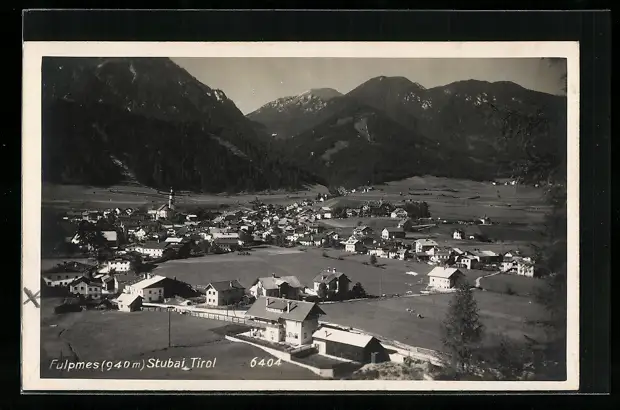 AK Fulpmes, Totalansicht mit Bergkette