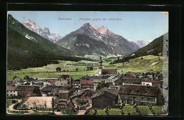 AK Fulpmes, Totale mit Gletscher im Hintergrund