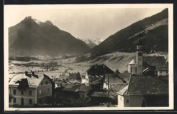 AK Fulpmes in T., Ortspartie aus der Vogelschau