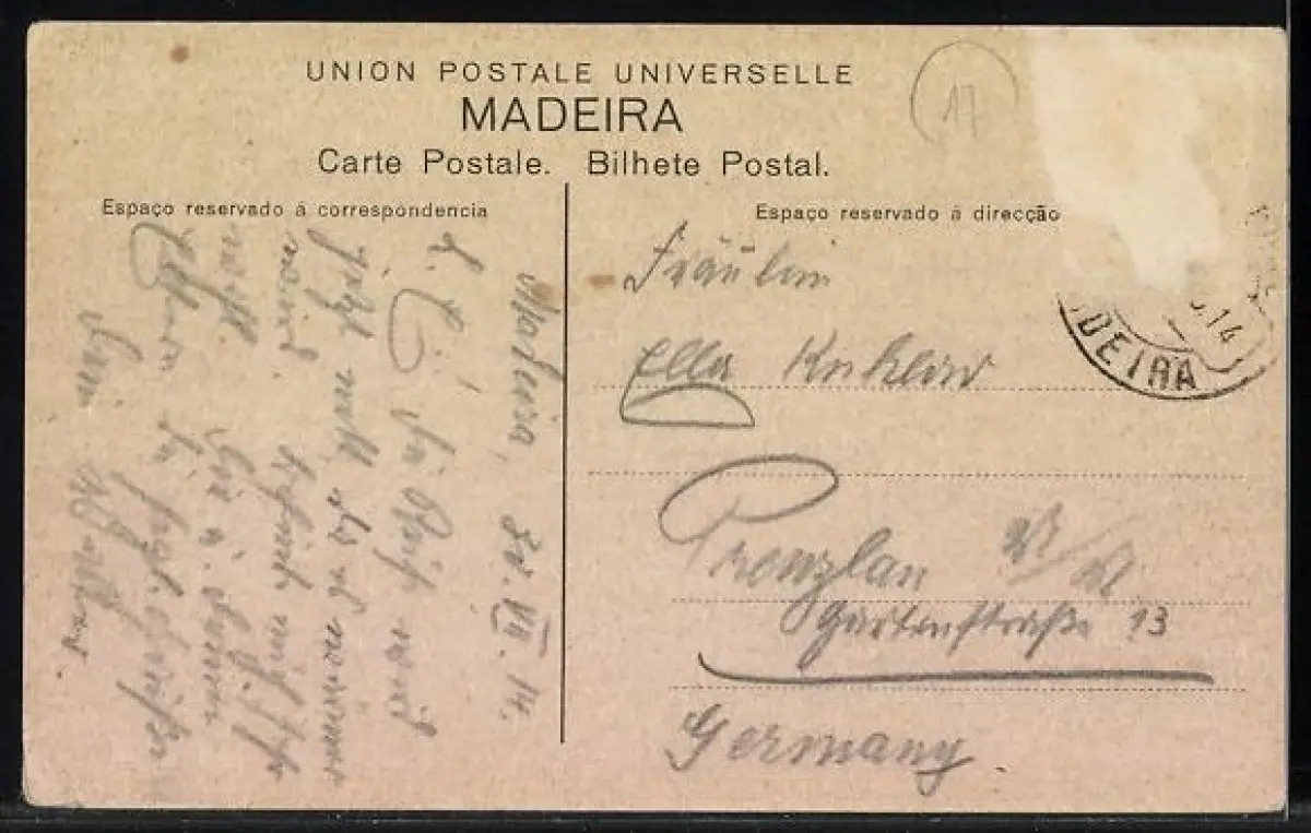 alte Ansichtskarte, gelaufen, Briefmarke entfernt, rückseitig Oberflächenschaden, Eckknick re. unten