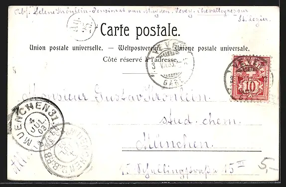 Personenbezogene Daten auf der Rückseite der Karte wurden durch blauen Textmarker unkenntlich gemacht. Die blauen Stellen sind auf die Vorderseite durchgeweicht und wirken sich negativ auf das Postkartenfoto aus