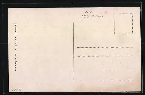 Personenbezogene Daten auf der Rückseite der Karte wurden durch blauen Textmarker unkenntlich gemacht. Die blauen Stellen sind auf die Vorderseite durchgeweicht und wirken sich negativ auf das Postkartenfoto aus