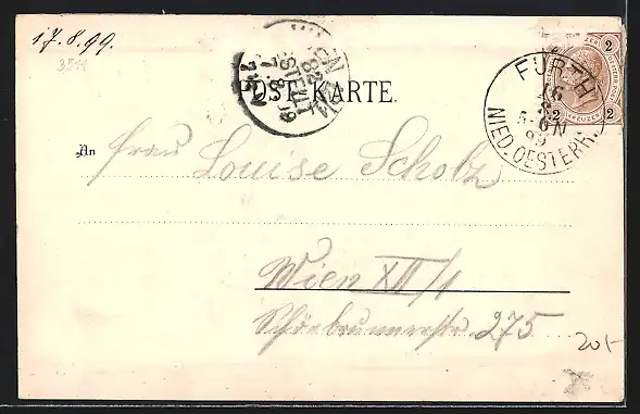 alte Ansichtskarte, gelaufen 1899, rückseitig Oberflächenschaden, guter Zustand
