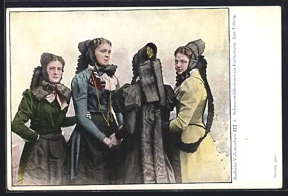AK Furtwangen, Schwarzwälderinnen in badischen Volkstrachten
