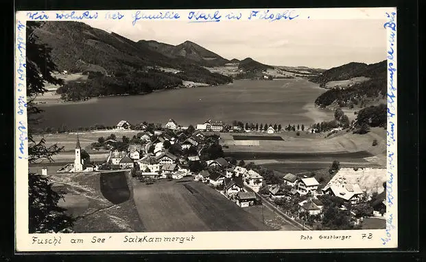 AK Fuschl am See, Totalansicht mit See und Kirche