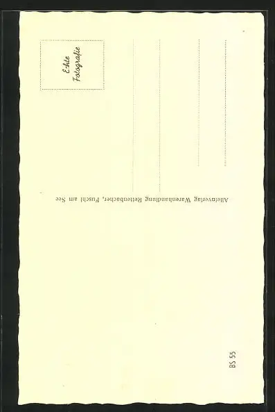 Personenbezogene Daten auf der Rückseite der Karte wurden durch blauen Textmarker unkenntlich gemacht. Die blauen Stellen sind auf die Vorderseite durchgeweicht und wirken sich negativ auf das Postkartenfoto aus