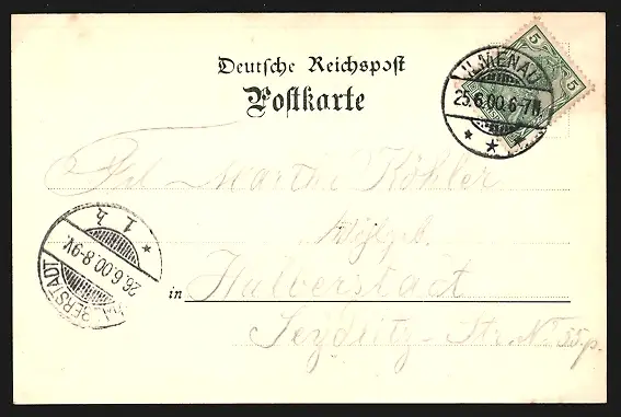 alte Ansichtskarte, gelaufen 1900, guter Zustand