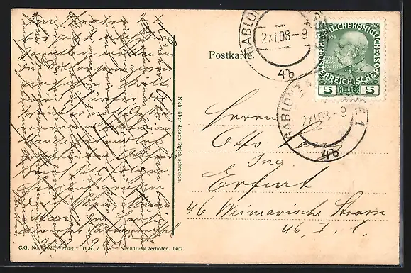 alte Ansichtskarte, gelaufen 1908, guter Zustand