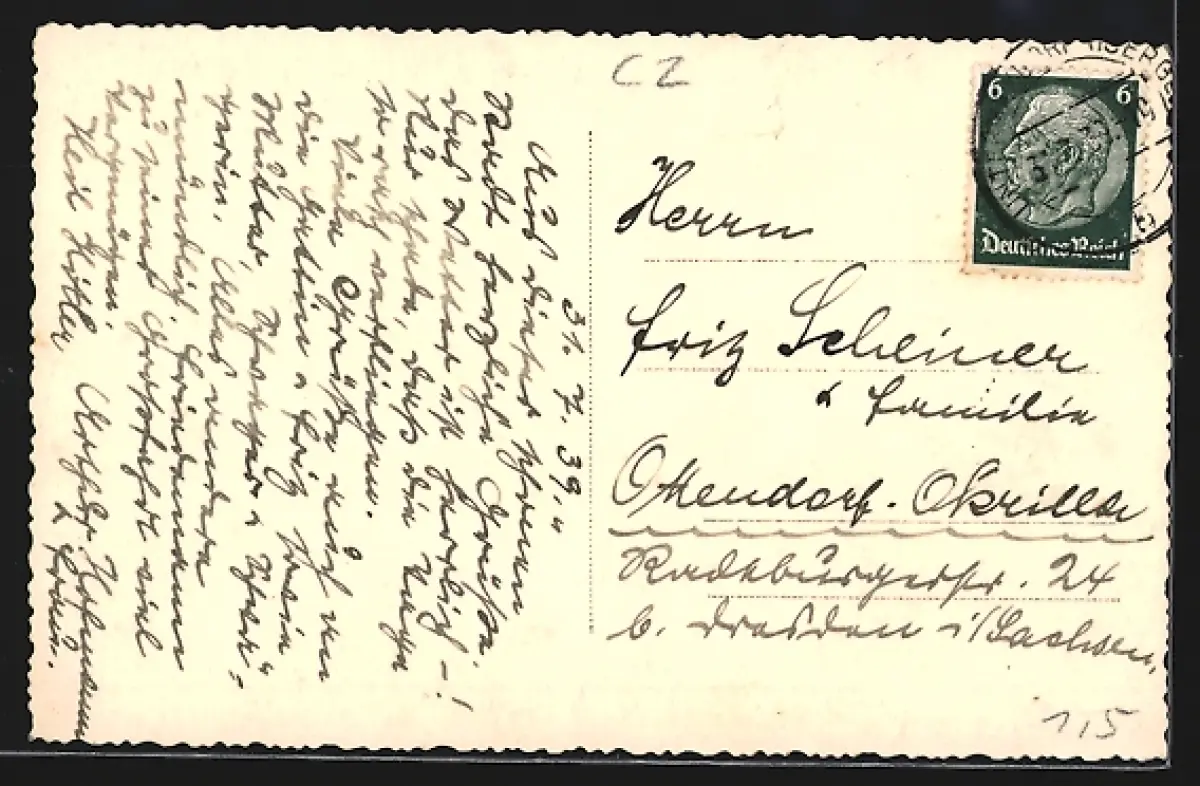 alte Ansichtskarte, gelaufen 1939, guter Zustand