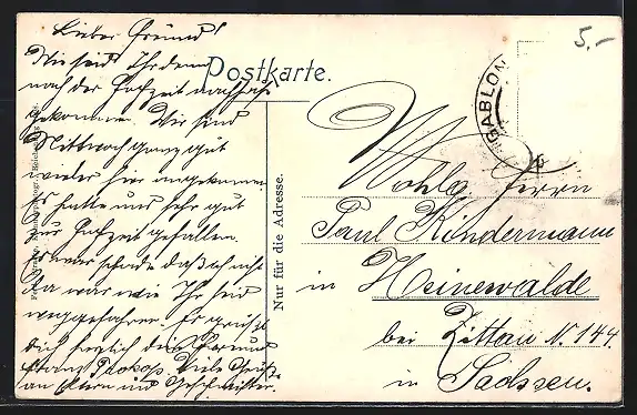alte Ansichtskarte, gelaufen, Briefmarke entfernt, rückseitig Oberflächenschaden, Eckknick re. unten, guter Zustand