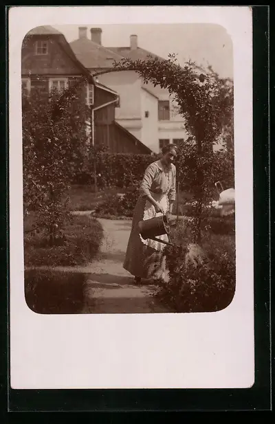 AK Gärtnerin mit Giesskanne beim Blumengiessen