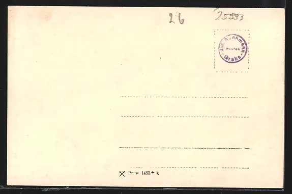 Personenbezogene Daten auf der Rückseite der Karte wurden durch blauen Textmarker unkenntlich gemacht. Die blauen Stellen sind auf die Vorderseite durchgeweicht und wirken sich negativ auf das Postkartenfoto aus