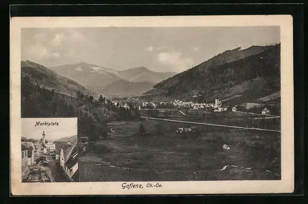 AK Gaflenz, Marktplatz, Totalansicht mit Gebirge