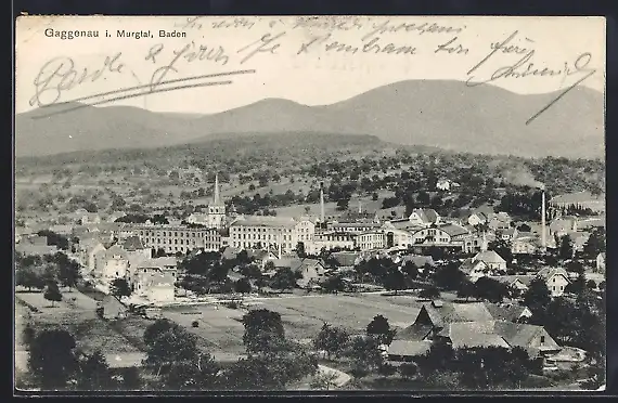 AK Gaggenau /Murgtal, L. Zeppelin 6 über der Ortschaft