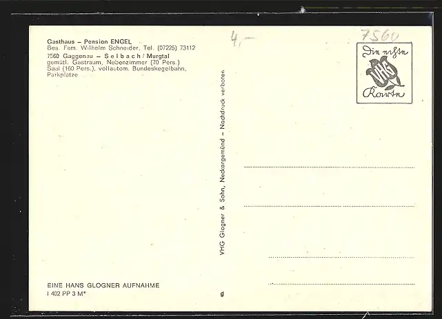 AK Gaggenau-Selbach, Gasthaus-Pension Engel