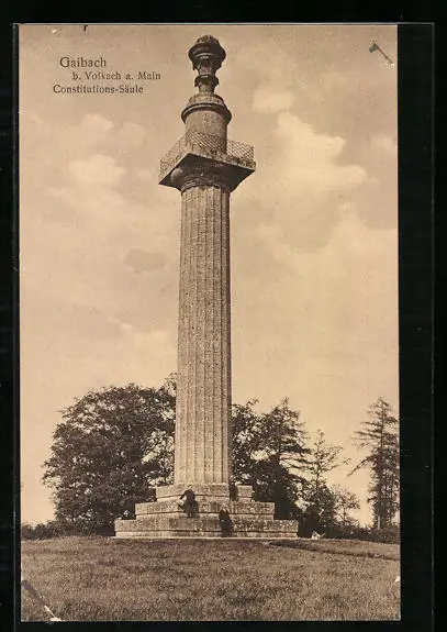 AK Gaibach b. Volkach, Constitutions-Säule mit Besuchern