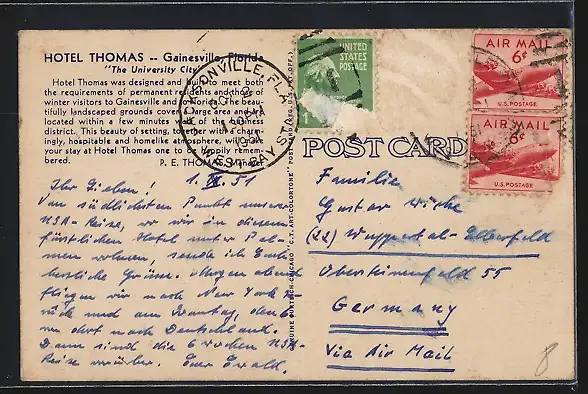 gelaufen 1951, Briefmarke entfernt, rückseitig Oberflächenschaden, guter Zustand