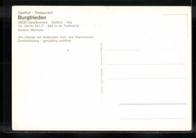 AK Gais bei Bruneck, Gasthof und Restaurant Burgfrieden