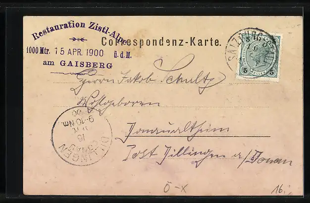 alte Ansichtskarte, gelaufen 1900, guter Zustand