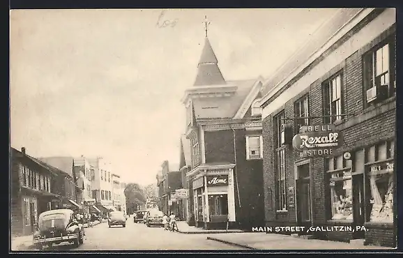 AK Gallitzin, PA, Main Street with Rexall Bell Store