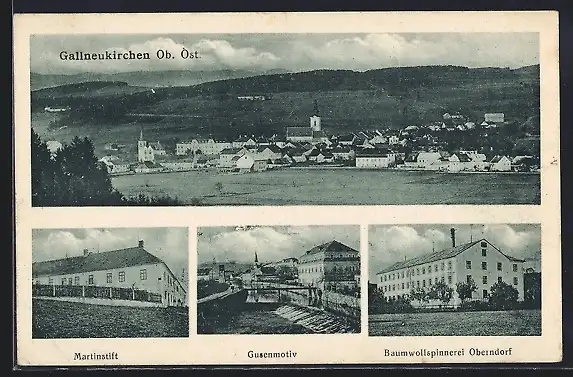 AK Gallneukirchen /Ob.-Öst., Martinstift, Baumwollspinnerei Oberndorf, Gusenmotiv, Totalansicht
