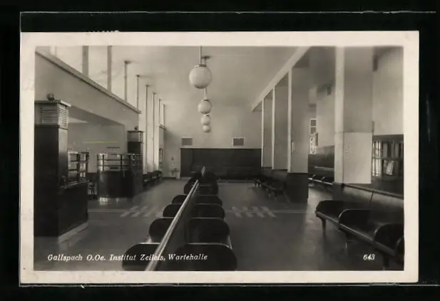 AK Gallspach, Institut Zeileis, Wartehalle, Innenansicht