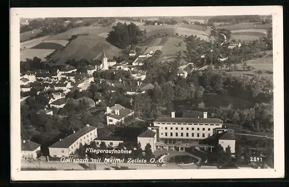 AK Gallspach, Ortsansicht mit Institut Zeileis, Fliegeraufnahme
