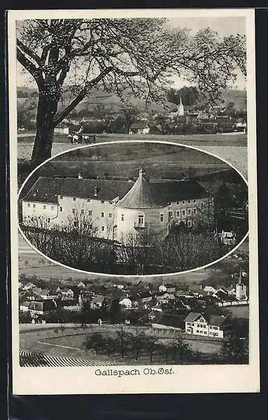 AK Gallspach, Teilansicht im Frühling, Ansicht vom Schloss