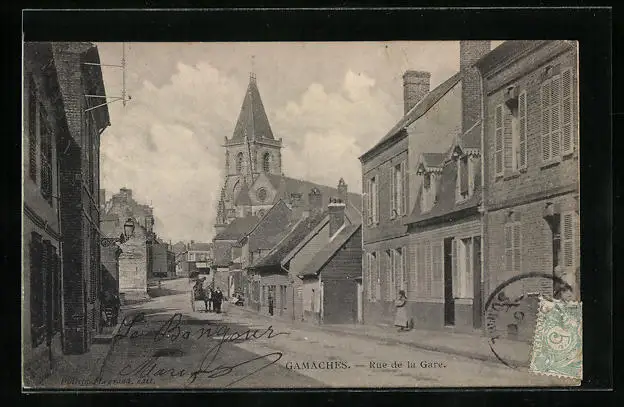 AK Gamaches, Rue de la Gare, Strassenpartie