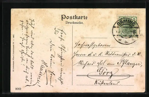 alte Ansichtskarte, gelaufen 1907, Stempelspur, guter Zustand