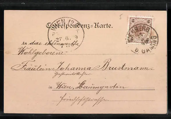 alte Ansichtskarte, gelaufen 1899, Stempelspur, guter Zustand