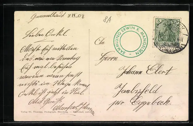 alte Ansichtskarte, gelaufen 1908, guter Zustand