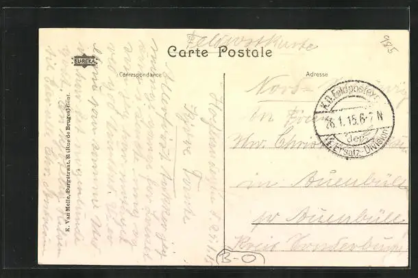 alte Ansichtskarte, gelaufen 1915 als Feldpost, Eckknick li. unten, guter Zustand