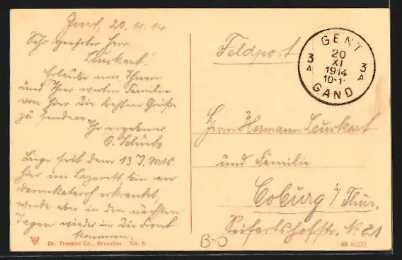 alte Ansichtskarte, gelaufen 1914, guter Zustand