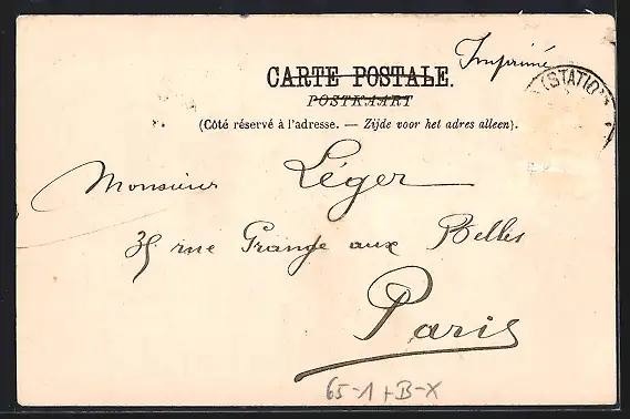 Personenbezogene Daten auf der Rückseite der Karte wurden durch blauen Textmarker unkenntlich gemacht. Die blauen Stellen sind auf die Vorderseite durchgeweicht und wirken sich negativ auf das Postkartenfoto aus