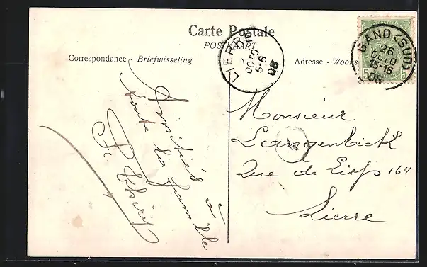 alte Ansichtskarte, gelaufen 1908, Stempelspur, guter Zustand