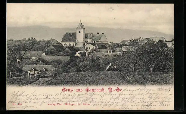 AK Gansbach /N.-Oe., Ortspartie mit Kirche