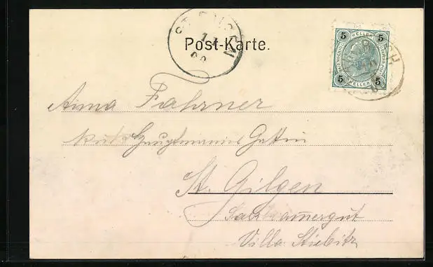 alte Ansichtskarte, gelaufen 1900, guter Zustand
