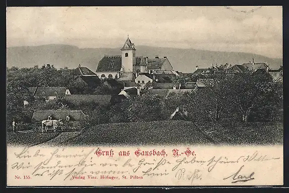 AK Gansbach /N.-Oe., Ortspartie mit Kirche
