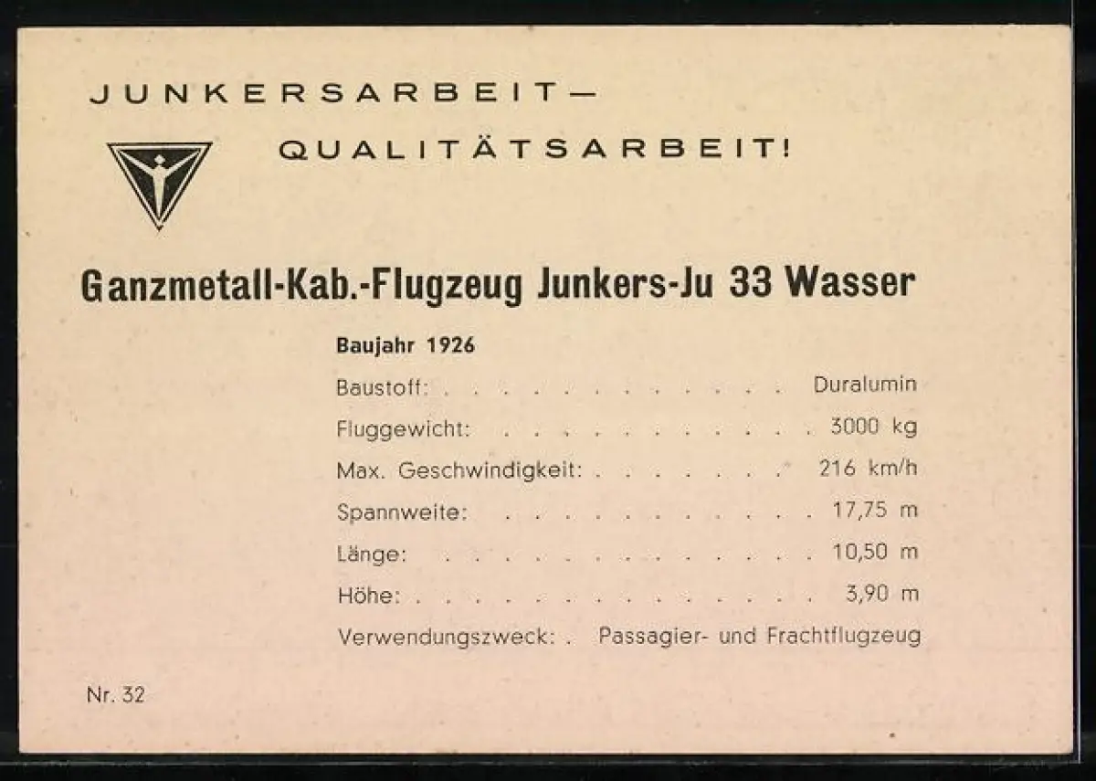 AK Ganzmetall-Kab.-Flugzeug Junkers-J 33 Wasser,