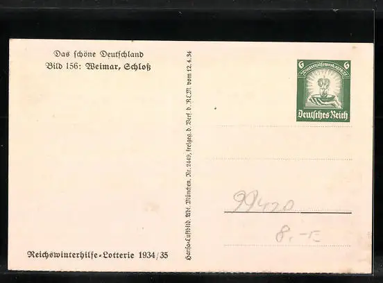AK Ganzsache WHW Winterhilfswerk, Weimar, Schloss