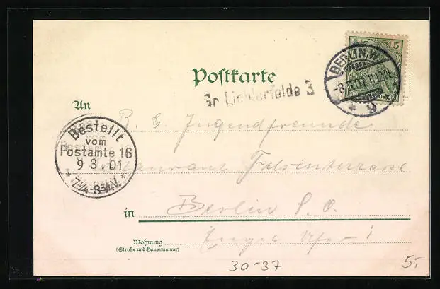 alte Ansichtskarte, gelaufen 1901, Stempelspur, guter Zustand