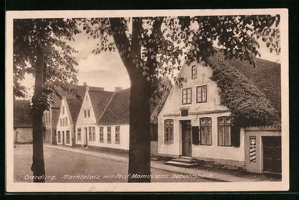 AK Garding, Marktplatz mit Prof. Mommsens Geburtshaus