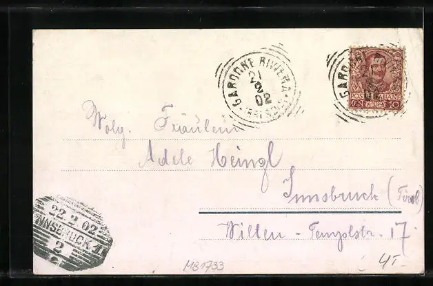 gelaufen 1902, Eckknick oben li., guter Zustand
